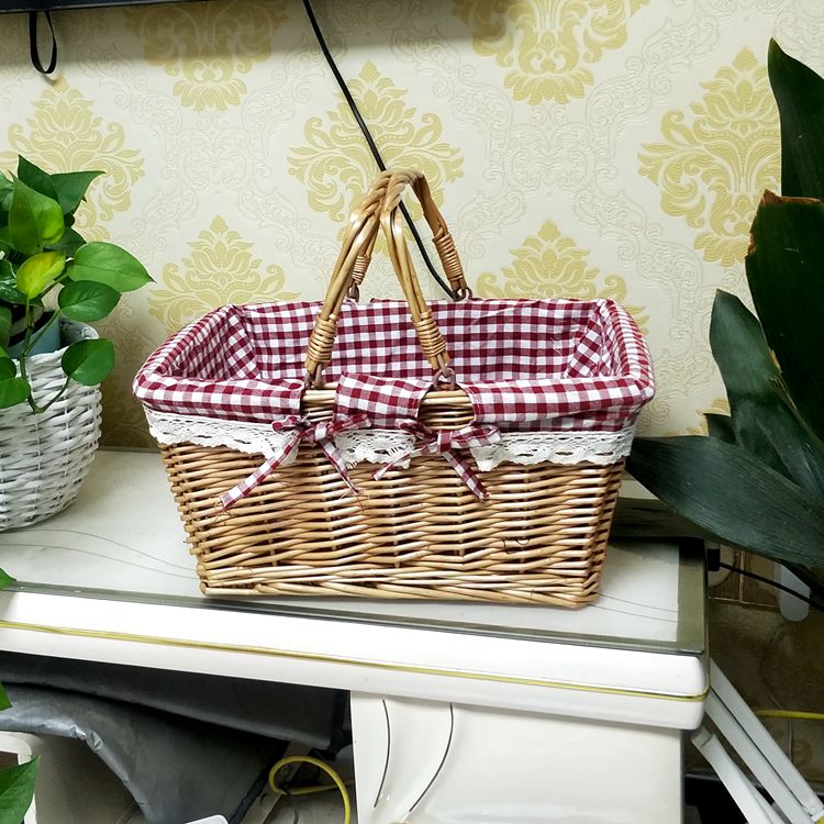Primary color food basket cart basket bamboo basket willow knitting storage picnic basket shopping basket egg basket portable rattan basket T7 primary color square linen white flowers with lace