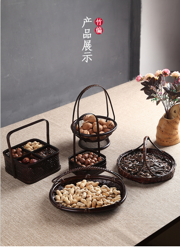 Antique bamboo tea tray basket lacquer bamboo high foot fruit tray storage basket Antique Japanese fruit basket fruit basin T04 square four lattice basket [picture price brand quotation] - Jingdong