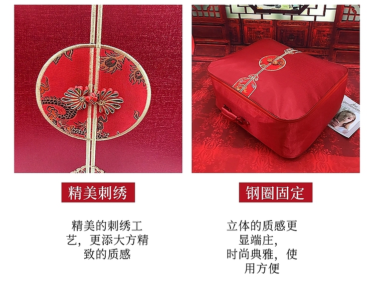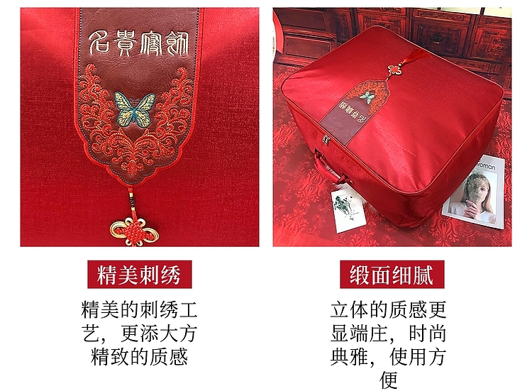 Wedding dowry wedding 4-piece set of packing bag red wedding quilt storage bag Satin Oxford portable T05 Luan Feng He Ming 4-piece bag 50 * 42 * 11cm (for 4-piece set or summer quilt) [picture price brand quotation] - Jingdong