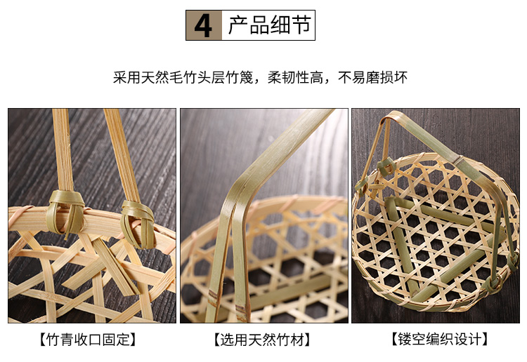 Handmade bamboo snack basket hand basket bamboo basket mini small bamboo basket fruit tray household round garden bamboo products t0216 large [picture price brand quotation] - Jingdong